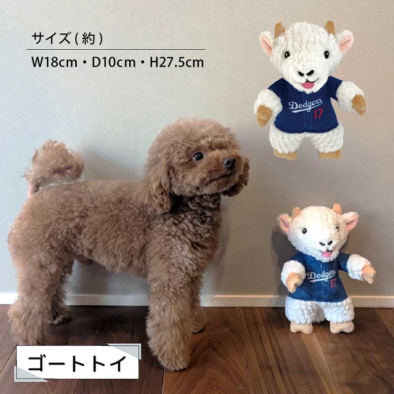 MLBの公式、大谷翔平選手モデルのペットグッズ。 メジャーリーグファン必見!! プラッシュ素材のゴート(羊)のおもちゃ、ドジャースのユニフォームを着て(刺繍)もちろん大谷選手のネームと背番号入り、 スキューカー入りで押すと音が鳴ります。