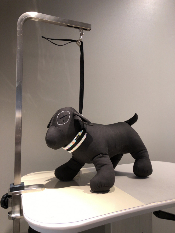 ネック部分を柔らかいスポンジクッションにすることでわんちゃんの首や喉への圧迫を避け、トリミング時の負担を軽減します!