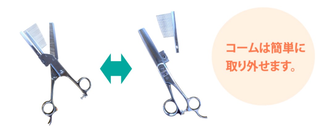 しかもスキバサミとコームが一体化しており、空いた片方の手で犬を安全に保定しながら施術できるから安心です!