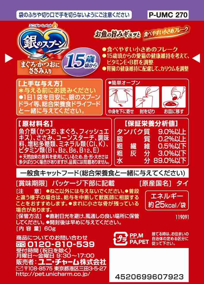 銀のスプーン パウチ15歳頃からまぐろ・かつおにささみ入り 60g