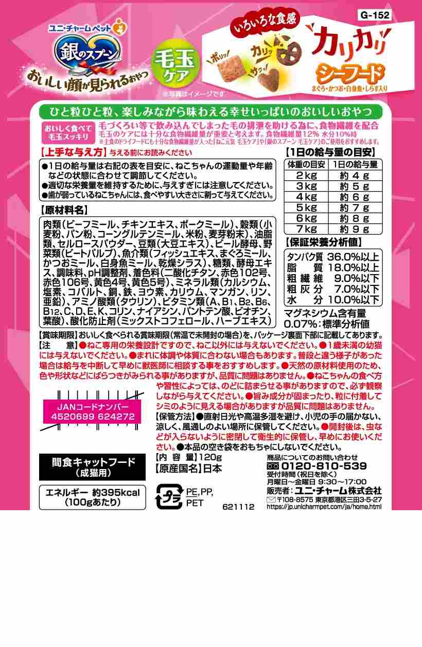 銀のスプーン おいしい顔が見られるおやつカリカリ毛玉ケアシーフード 120g