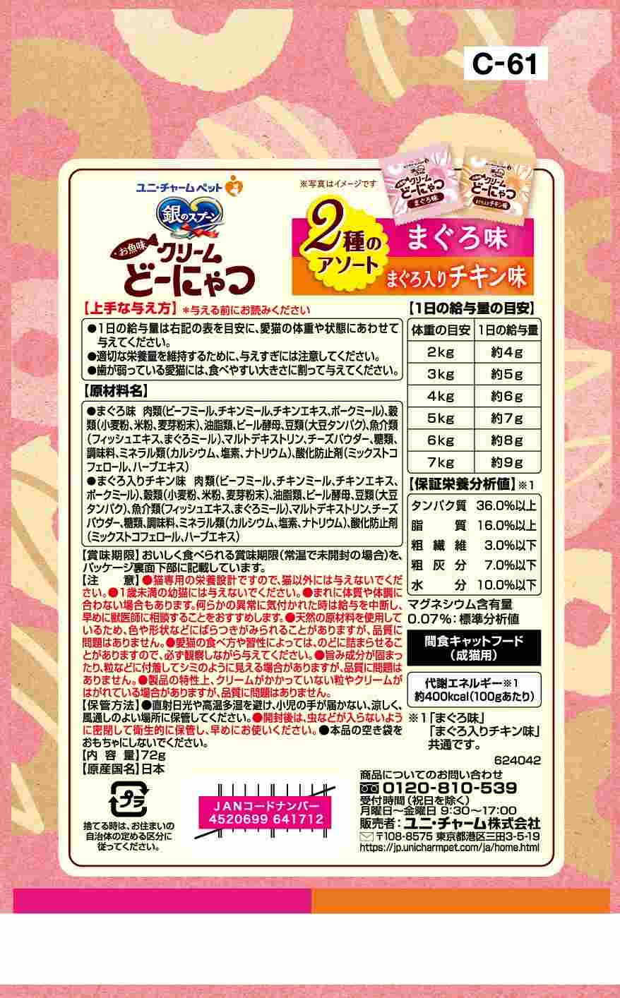 ●猫専用の栄養設計ですので、猫以外には与えないでください。●1歳未満の幼猫には与えないでください。●まれに体質や体調に合わない場合もあります。何らかの異常に気付かれた時は給与を中断し、早めに獣医師に相談することをおすすめします。●天然の原材料を使用しているため、色や形状などにばらつきがみられることがありますが、品質に問題はありません。●愛猫の食べ方や習性によっては、のどに詰まらせることがありますので、必ず観察しながら与えてください。●旨み成分が固まったり、粒などに付着してシミのように見える場合がありますが、品質に問題はありません。●製品の特性上、クリームがかかっていない粒やクリームがはがれている場合がありますが、品質に問題はありません。