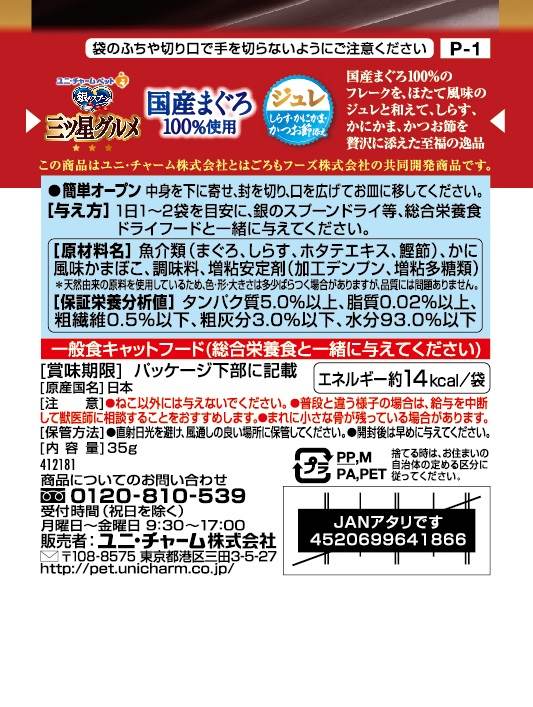 銀のスプーン 三ツ星グルメ パウチ国産まぐろ100%使用ジュレしらす・かにかま・かつお節添え 35g