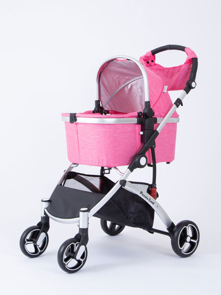 CARINO2の進化版。日除けカバーをファスナーではなく、ワンタッチバックル開閉に変更。CARINOシリーズの軽快性と操作性、キャリーコットセパレート、ハンドルの角度調整に加え、日除け部分がファスナー開閉ではなくワンタッチバックル開閉に進化。ファスナー劣化による開閉のしづらさが解消されました。コンパクトに畳める二つ折りフレーム。正面対面どちらでも使用可能。折り畳んだ状態での自立可能。衝撃を吸収するサスペンション付き。5段階角度調節ハンドル。飛び出し防止用リードフック2本付き。