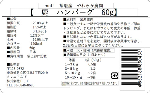 mot! やわらか鹿肉 鹿ハンバーグ 60g