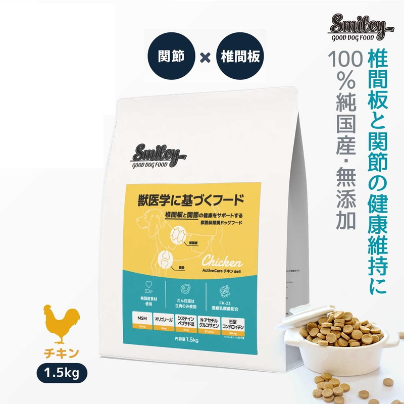 健康サポート成分をプラスした機能性ドッグフード。 愛犬の悩みに応じた健康維持を助け、活動的な毎日を支えます。 素材の栄養と美味しさにもこだわった、次世代型の愛犬用フードシリーズです。 動物病院用サプリメントに配合している椎間板の健康と、関節の健康を維持する成分配合 ■椎間板の健康を維持するためにシステインペプチド含有酵母エキス末配合 ■椎間板と神経の健康を維持するためにオリゴノール(R)配合 ※オリゴノールは(株)アミノアップの登録商標です ■関節軟骨の健康を維持するためにN-アセチルグルコサミン、E型コンドロイチン、MSM(メチルスルフォニルメタン)配合 ■小麦粉、小麦グルテンフリー ■ノンオイルコーティング ■香料、着色料、合成酸化防止剤不使用 ■100%純国産