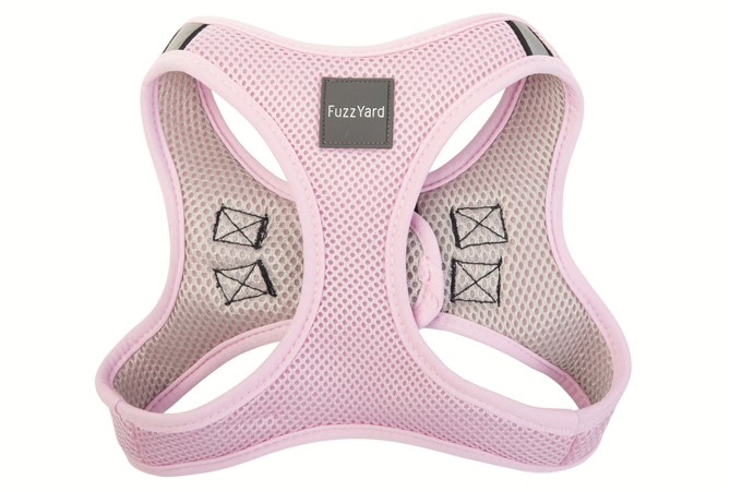 おしゃれでかわいい新しい仕様の犬用ステップインハーネスは、その名の通りステップイン(跨いで入って)して着用するタイプ。通気性の良いメッシュ素材でつけ心地快適。