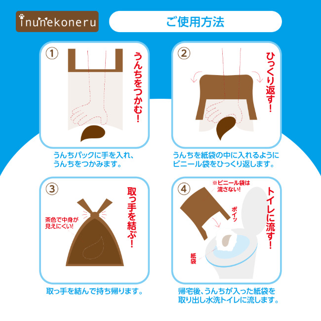 外から見えないビニール袋は結びやすい持ち手つきです。