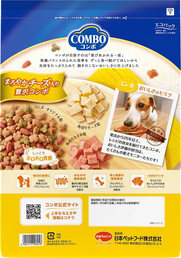 愛犬が大好きなチーズ粒がゴロゴロと入った贅沢なコンボ。