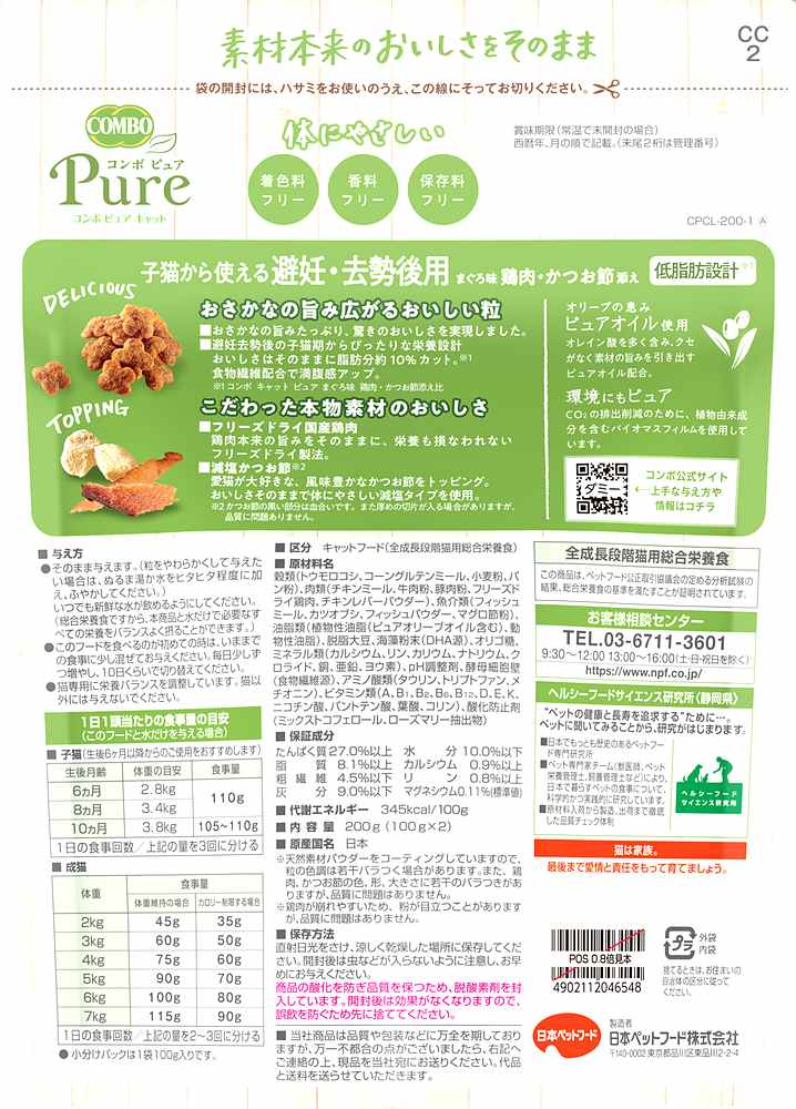 コンボピュアキャット肥満が気になる猫用まぐろ味・鶏肉・かつお節添え200g