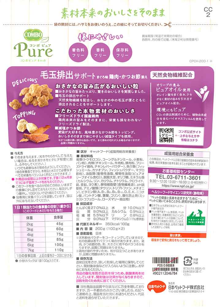 コンボピュアキャット毛玉排出サポートまぐろ味・鶏肉・かつお節添え200g