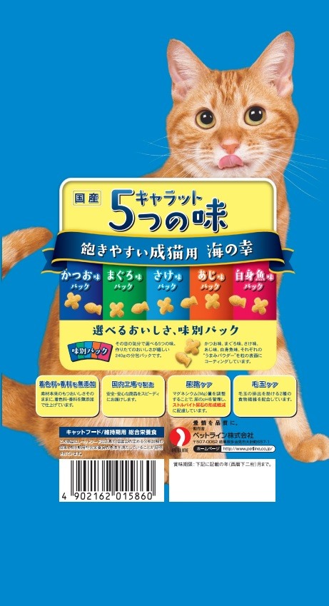 愛猫の大好きな5種類の味を味別パックしたドライフード