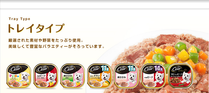 ワンちゃんのライフステージ(年齢)に合わせたラインナップをお届けします。シーザーのおいしいお食事をいつまでも楽しんでほしいから、ワンちゃんの年齢に配慮した、食べやすさ、栄養にこだわって作りました。どのライフステージでも人気の「ビーフ」「チキン」を楽しめます。