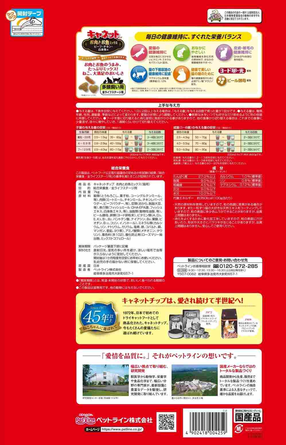 猫の健康維持に必要な栄養素をバランスよく配合。食べやすい粒サイズとサクサクとした食感が人気。