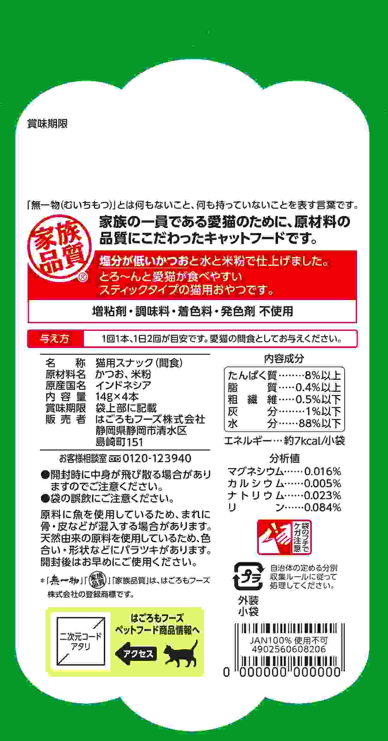 はごろもフーズ 無一物 舌福 かつお 14g×4本