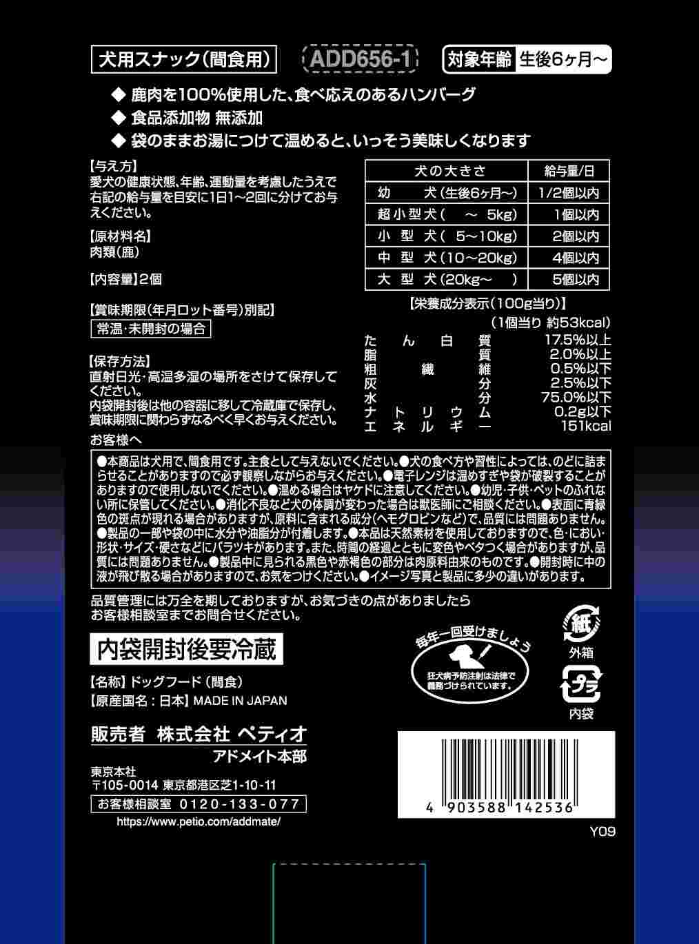 Add.Mete プレミアム 鹿肉ハンバーグ 2個入