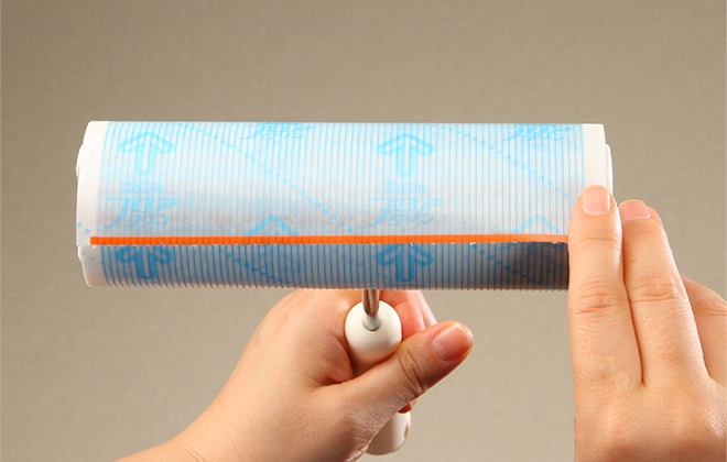 フローリングをはじめ、カーペット、畳、ビニール床など、どんな床でも使えるコロコロです。フローリングでも床に貼りつかない弱粘着と、ゴミをしっかりキャッチする強粘着のW粘着を採用。めくり口がすぐわかり、スパッと切れるオレンジライン入りのスカットカット機能も搭載。ストレスフリーな使い心地を実現しています。長さを調節できる伸縮Lタイプ。
