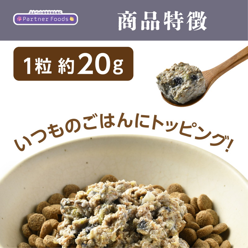 リニューアルポイント① 20g×6粒だから、与える量が調整しやすい! トッピングしやすい! リニューアルポイント② チャック付きだから保存しやすい!