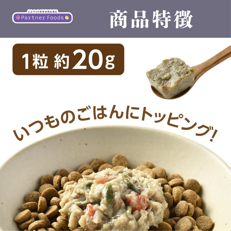 リニューアルポイント① 20g×6粒だから、与える量が調整しやすい! トッピングしやすい! リニューアルポイント② チャック付きだから保存しやすい!