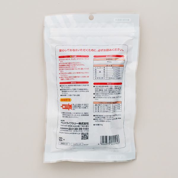 ●給与量を参考に1日2‐3回おやつとしてお与えください。与える量は、犬種・体重・年齢・性質・運動量・体調・妊娠期などによって異なりますので、状況をみて量の調整をしてください。