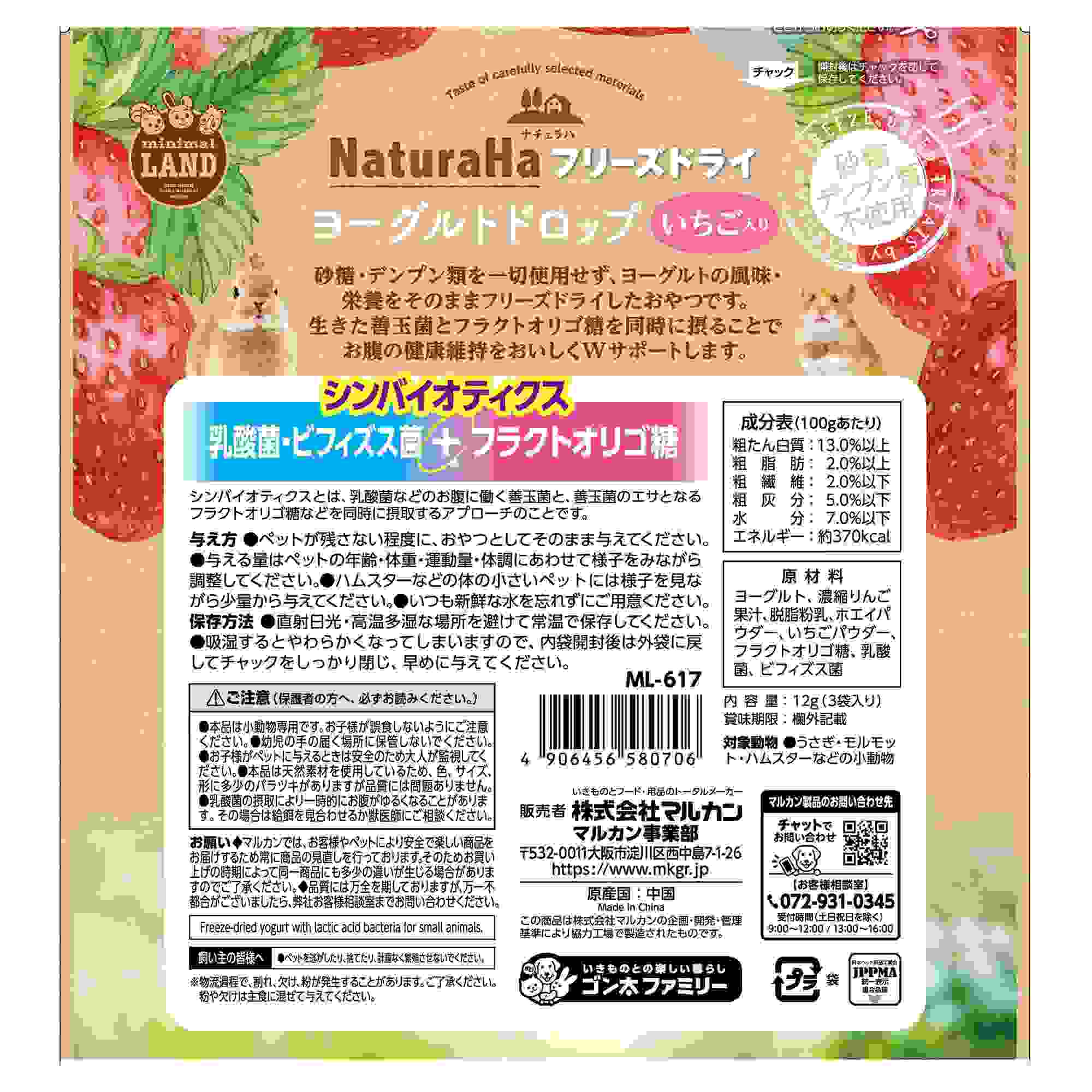 ミニマルランド ナチュラハ フリーズドライ ヨーグルトドロップ いちご入り 12g