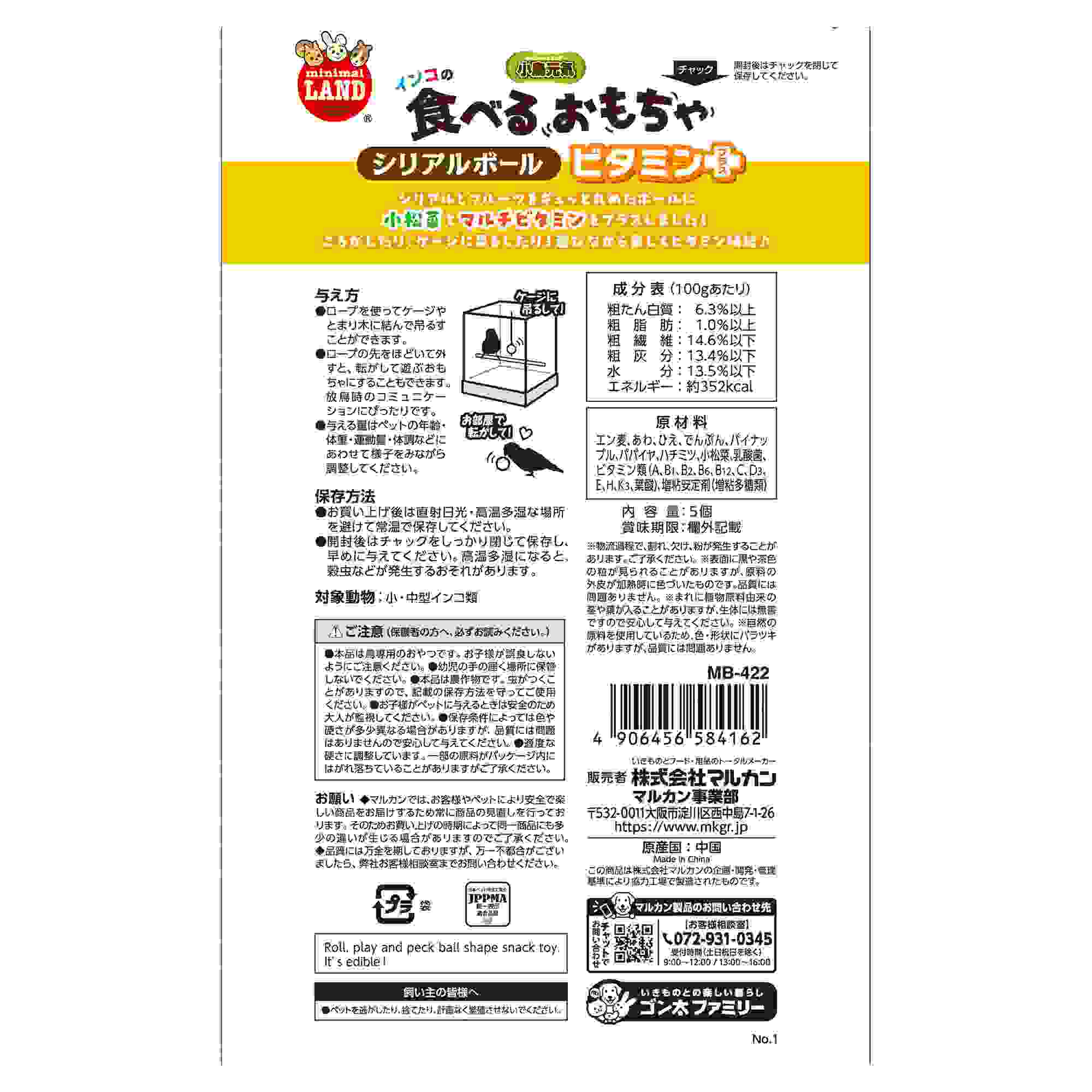 ミニマルランド インコのシリアルボール ビタミンプラス 5個