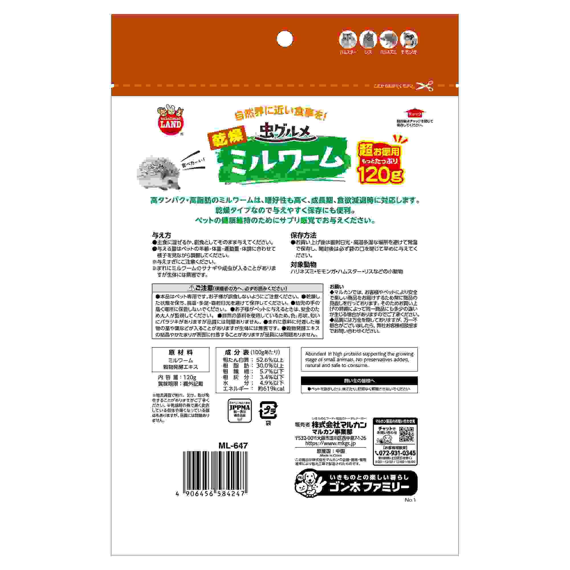 ミニマルランド 虫グルメ 乾燥ミルワーム 超お徳用 120g