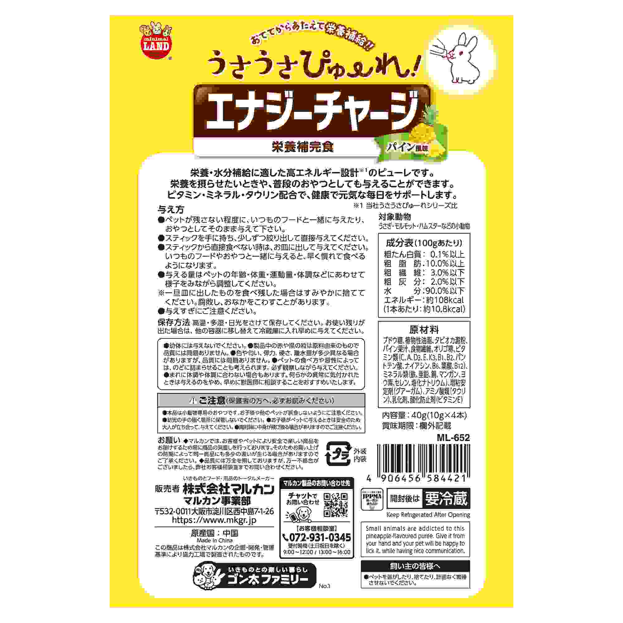 栄養・水分補給に適したエナジーチャージができるピューレです。栄養を摂らせたいときや、普段のおやつとしても与えることができます。ビタミン・ミネラル・タウリン配合で、健康で元気な毎日をサポートします。