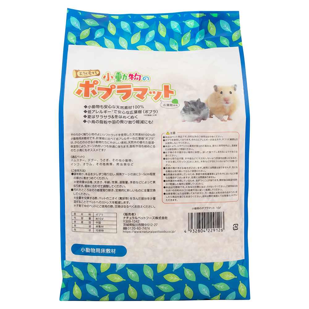 やわらかくさわり心地のよいソフトウッドを使用した天然素材100%の小動物用床敷材です。針葉樹と比べて低アレルギーな広葉樹“ポプラ”は、からだの小さな小動物たちにやさしい素材!クッション性が高く、吸湿・保温性に優れているので一年中お使いいただけます。脂粉や羽も絡めとるので、小鳥にもオススメです♪