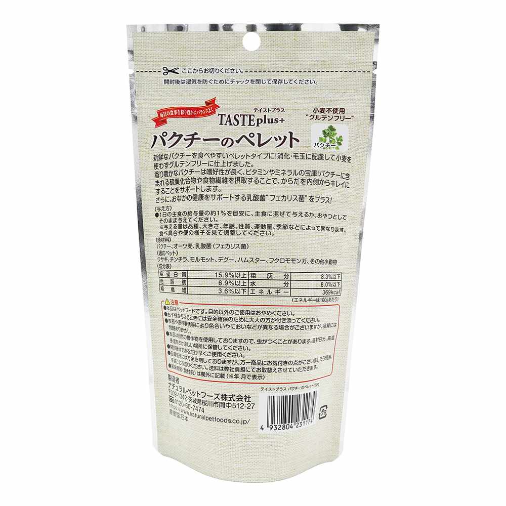 消化・毛玉に配慮して小麦を使わずグルテンフリーに仕上げました。香り豊かなパクチーはし好性が良く、ビタミンやミネラルの宝庫!パクチーに含まれる硫黄化合物や食物繊維を摂取することで、からだを内側からキレイにすることをサポートします。さらに、おなかの健康をサポートする乳酸菌?フェカリス菌”をプラス!
