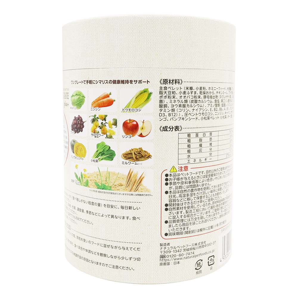 乳酸菌配合主食ペレットでおなかサポート!天然素材そのまま!乾燥ミルワーム入りでタンパク質補給!天然素材!小松菜ペレット入りで手軽に栄養補給!それぞれの素材のおいしさを味わいながら毎日の食事をもっと楽しく。保存にも便利でエコな紙筒パッケージ!保存にも便利でエコな紙筒パッケージ!