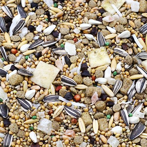 基本のシードミックスとペレットフード、フルーツ、ナッツをブレンド。