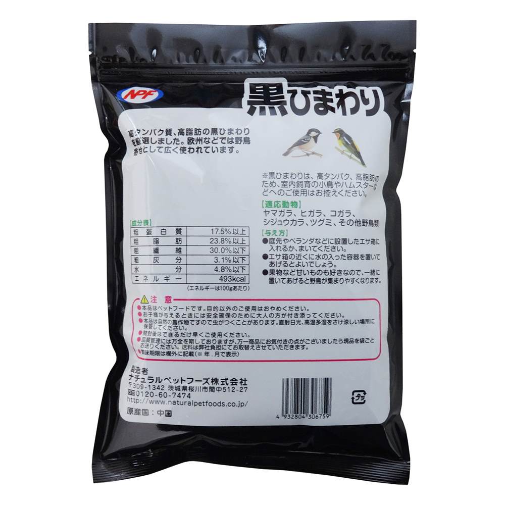 高タンパク、高脂肪の黒ひまわりを厳選。活発に動き回る野鳥のまき餌に最適です。欧州などでは野鳥寄せとして広く使われています。