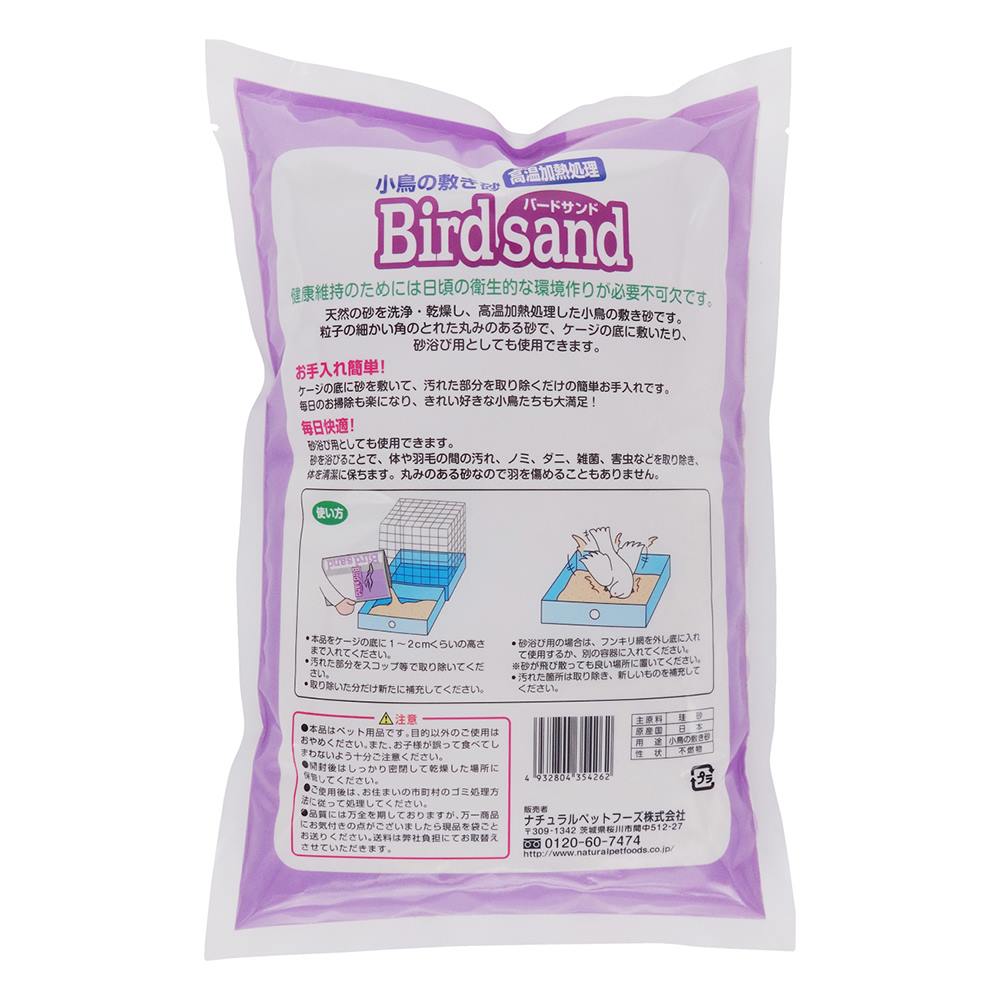 国内産の角がとれた丸みのある砂を使用し、砂遊びをしても羽を傷めません。また、鳥カゴの底に敷く事で清潔な環境を保ち、小鳥の健康を維持します。
