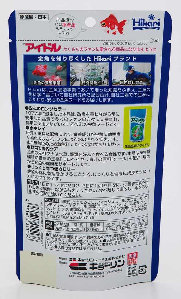 植物質を好んで食べる金魚の食性を考慮し、良質原料をバランス良く配合した健康食。