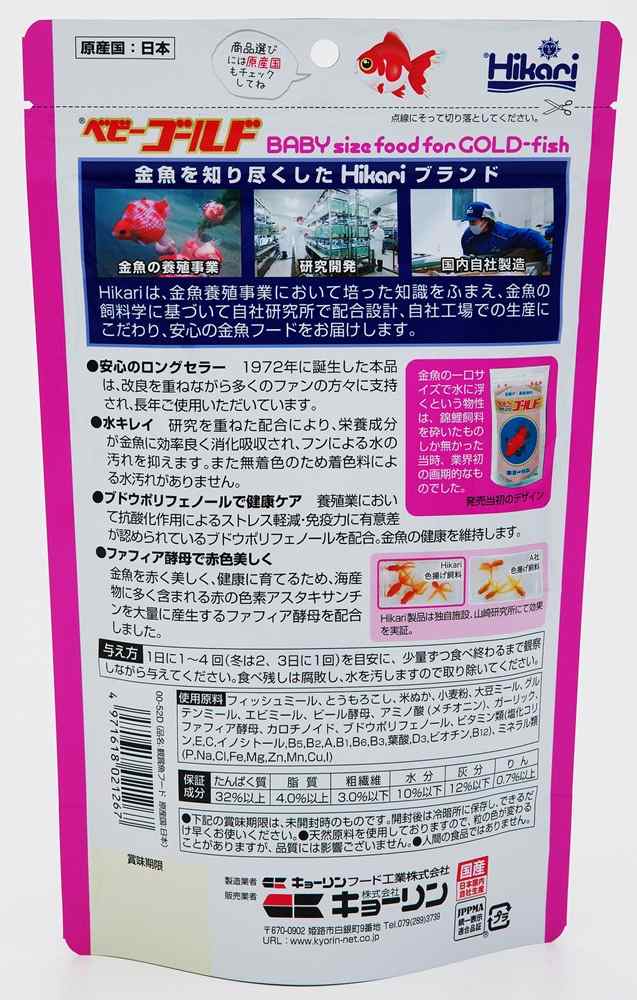色揚成分のぶどうポリフェノールとファフィア酵母を配合し、より赤く美しく健康に育つ金魚の健康食です。