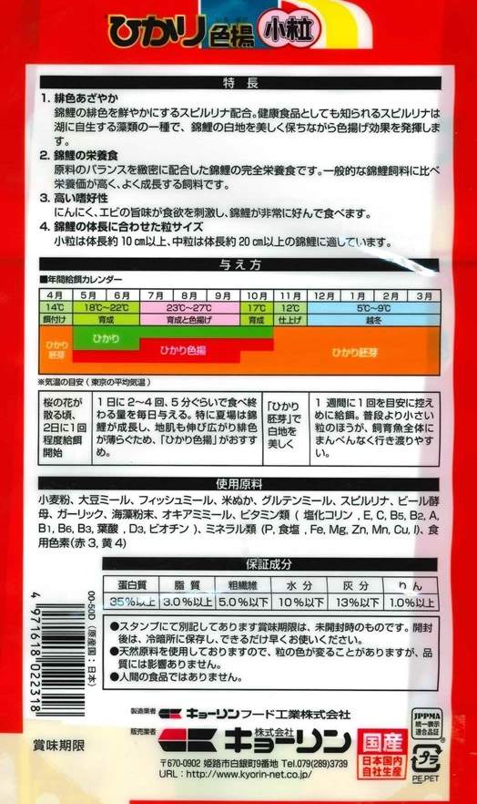 スピルリナ配合で、白地を保ちながら緋色を鮮やかにします。(小粒)