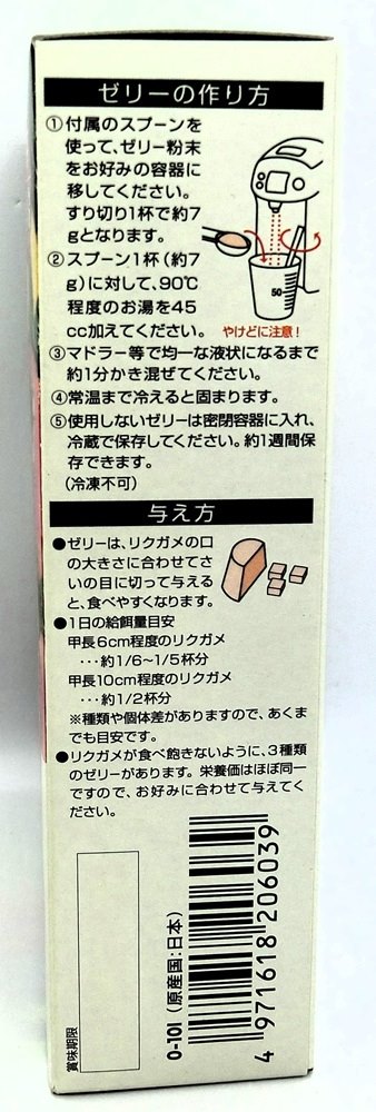 )リクガメが食べ飽きないように、3種類のゼリーがあります。