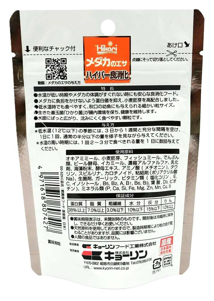 ひかり メダカのエサハイパー良消化 20g
