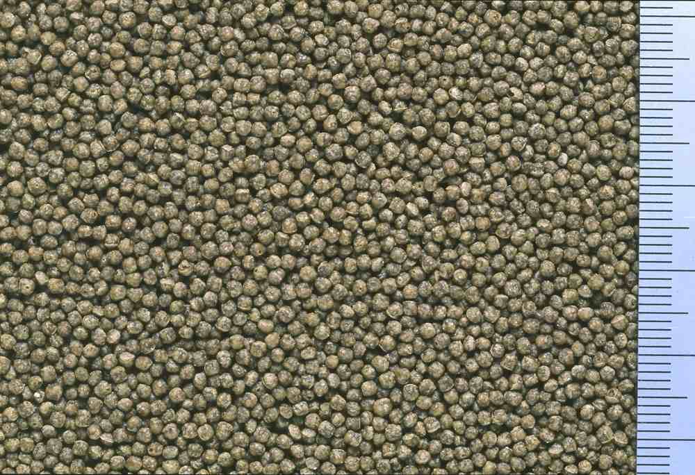 小麦粉、フィッシュミール、とうもろこし、大豆粕、オキアミミール、グルテンミール、ビール酵母、スピルリナ、魚油、消化酵素、ガーリック、アミノ酸(L-グルタミン酸ナトリウム)、ビタミン類(A、D3、E、K、塩化コリン、C、B5、B2、B1、B6、B3、葉酸、ビオチン)、ミネラル類(Fe、Mg、Zn、Mn、I、P、食塩)