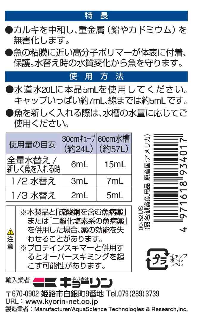 新しく魚を購入した際や、移動、採集などで粘膜に傷がついた魚を守り、カルキも中和します。