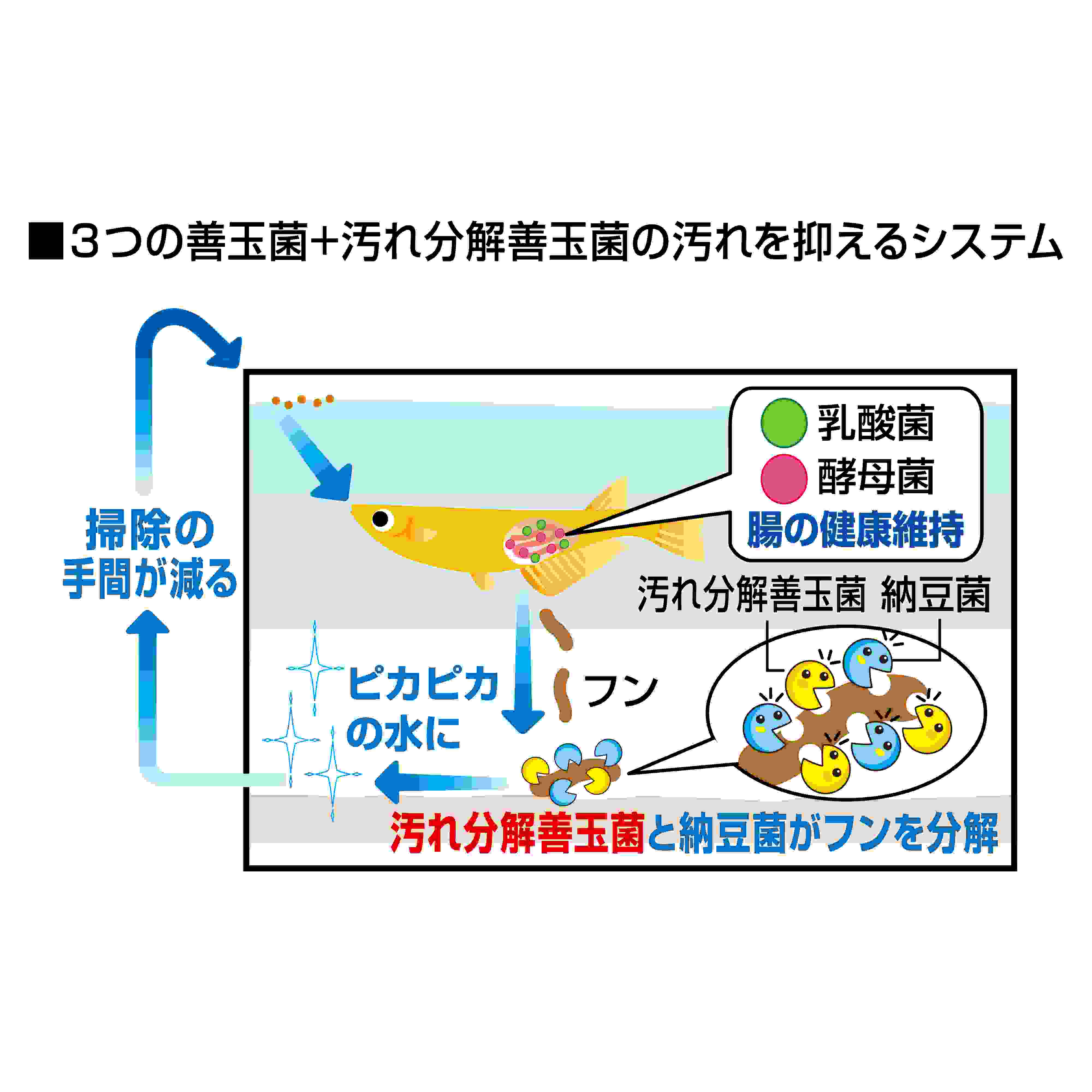 ●NEW 昆虫原料配合 ●フンを分解 水汚れを抑える ●汚れを分解する善玉菌+3つの善玉菌 ●きれいな水でメダカを育てる