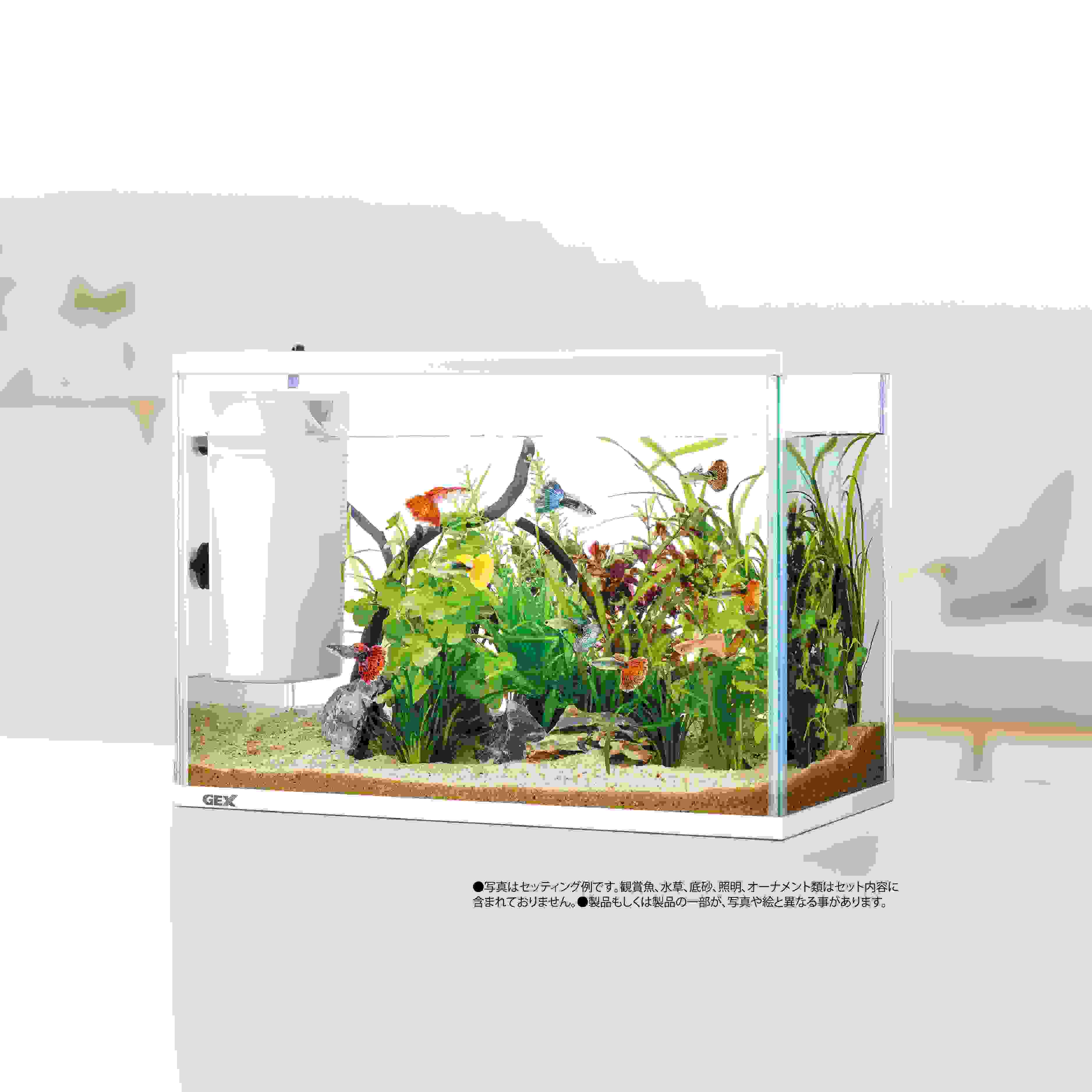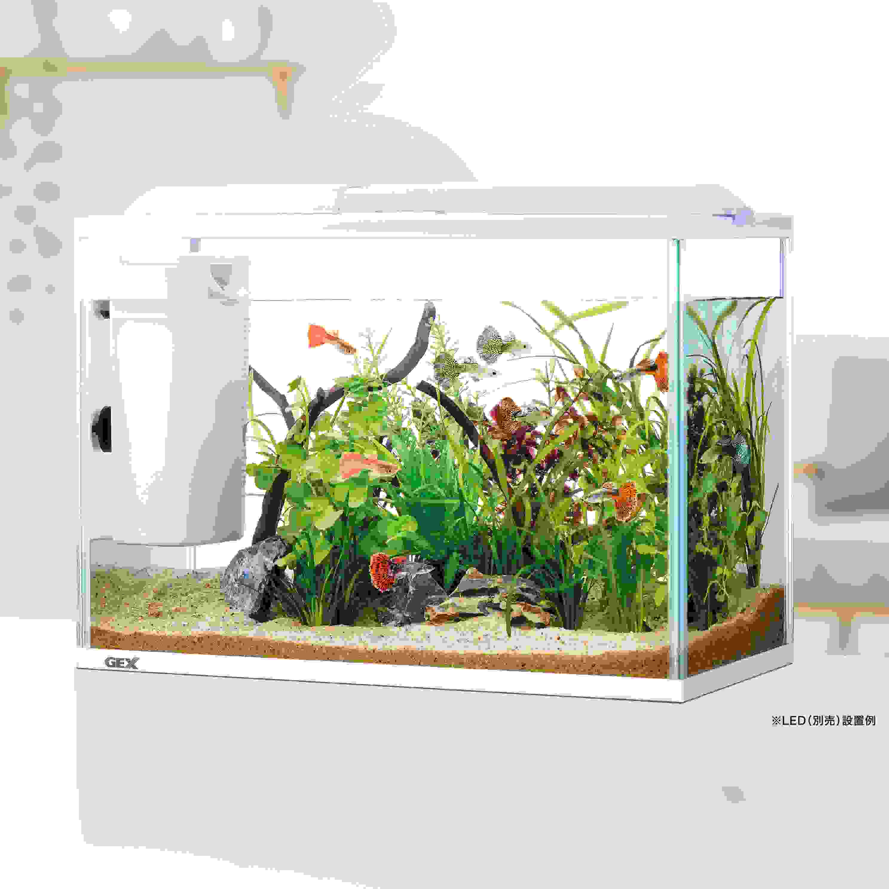 ●水換え簡単フィルターがセットされた水槽セット●インテリアにマッチするホワイトフレーム