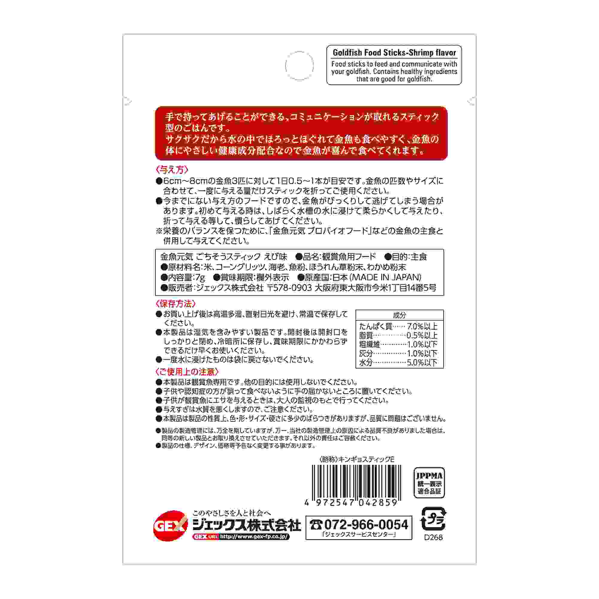●国産●金魚よろこぶ!金魚の体にやさしい健康成分配合●手に持ってあげられるスティックごはん●大好きえび味●食いつきバツグン!ぱくぱく食べる●着色料不使用