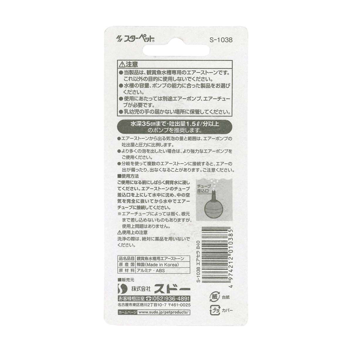 ●当製品は、観賞魚水槽専用のエアーストーンです。これ以外の目的に使用しないでください。●水槽の容量、ポンプの能力に合った製品をお選びください。●使用にあたっては別途エアーポンプ、エアーチューブが必要です。●乳幼児の手の届かない場所に保管してください。●水深35cmまで・吐出量1.5L/分以上のポンプを推奨します。●エアーストーンから出る気泡の量と範囲は、エアーポンプの吐出量と圧力に比例します。●より多くの泡を出したい場合は、より強力なエアーポンプをご使用ください。●分岐を使って複数のエアーストーンに接続すると、エアーの出が偏ったり、出なくなることがあります。ご注意ください。