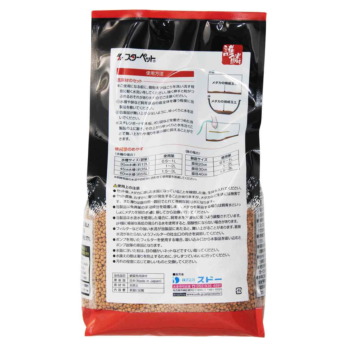 ※ご使用になる前に、微粉末やほこり洗い流す程度に軽く水洗いをしてください。強く押すと粒がつぶれるおそれがありますのでご注意ください。●水槽や鉢など飼育容器の底全体を覆う程度に当製品を敷いてください。●当製品が舞い上がらないように、ゆっくりと水を注いでください。※スチレンボードや木版、ポリ袋などを敷きつめた当製品の上に置き、その上からゆっくりと水を注ぐことで舞い上がりや濁りを最小限に抑えることができます。