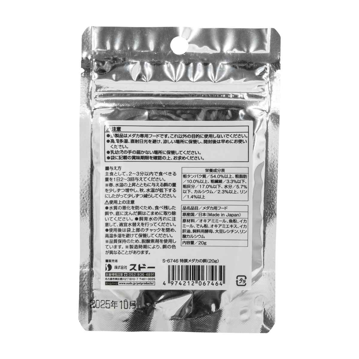 繁殖に適した元気な親メダカを育てる高タンパク、高脂肪、高栄養価成分を配合しました。しばらく浮かんでゆっくり沈む消化吸収のよい極小の顆粒です。
