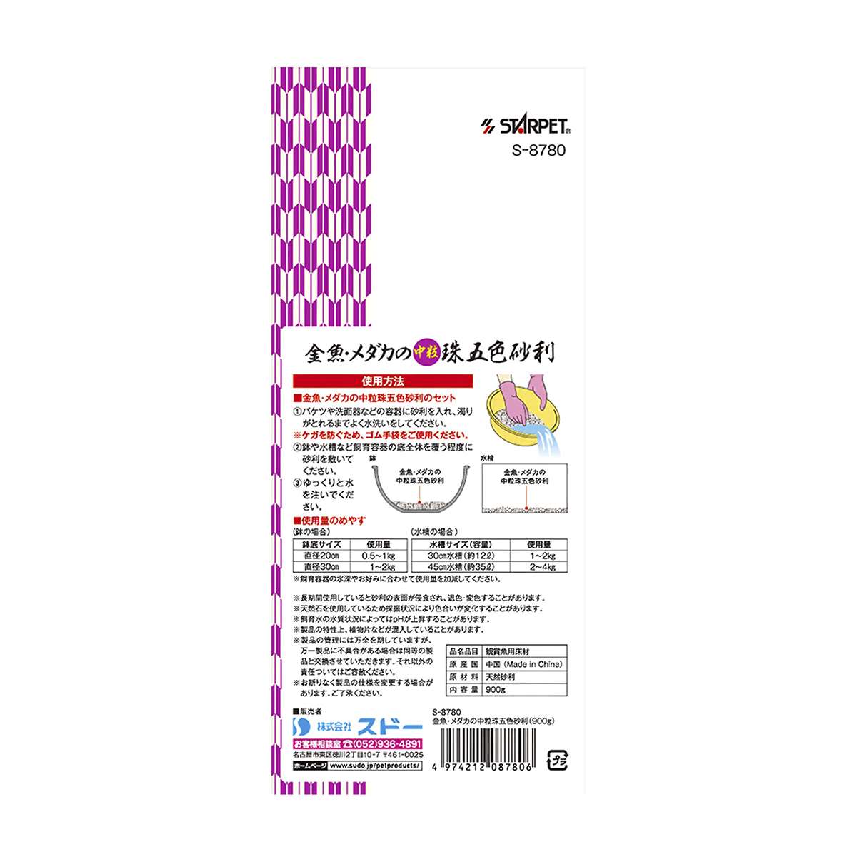 スターペット 金魚・メダカの中粒珠五色砂利 900g