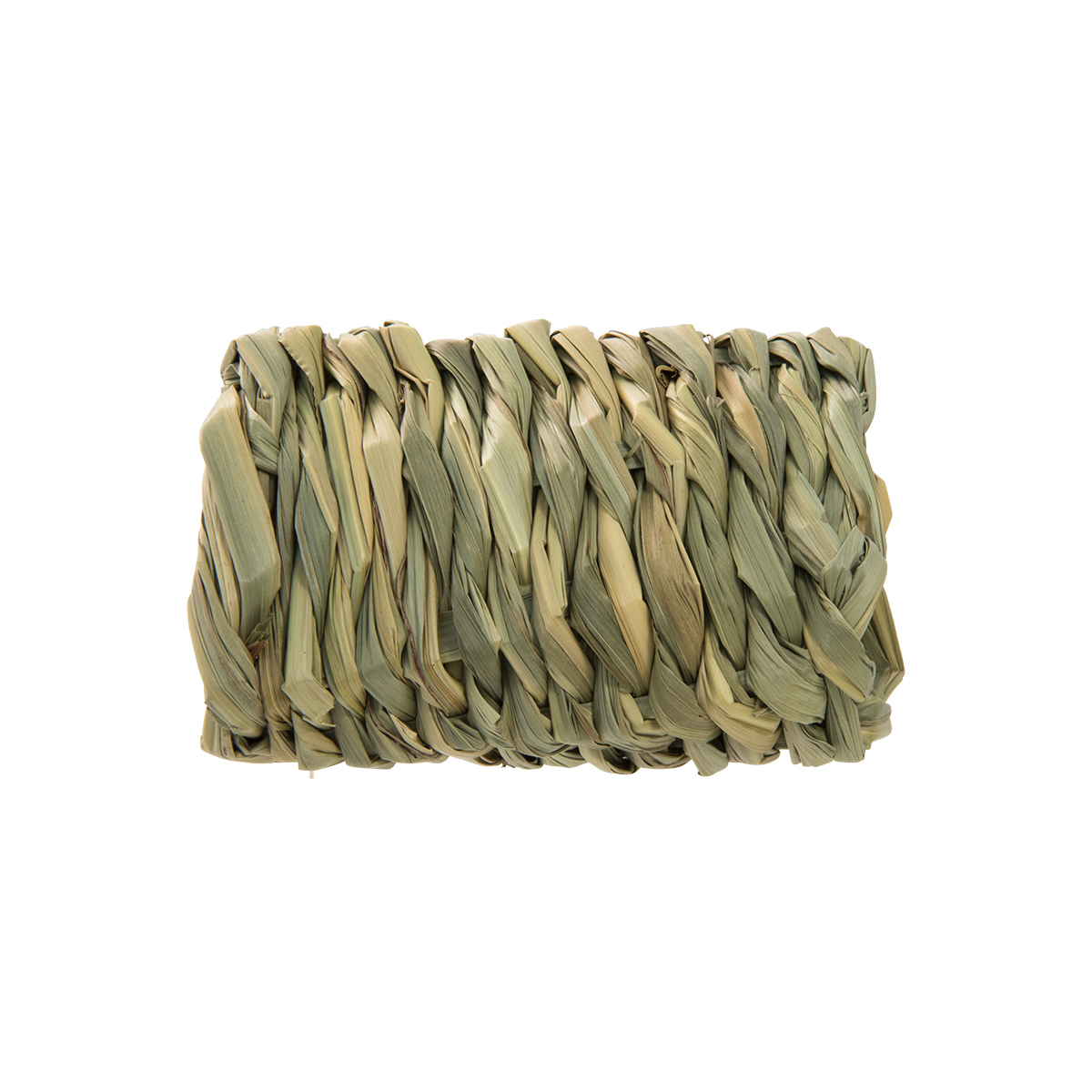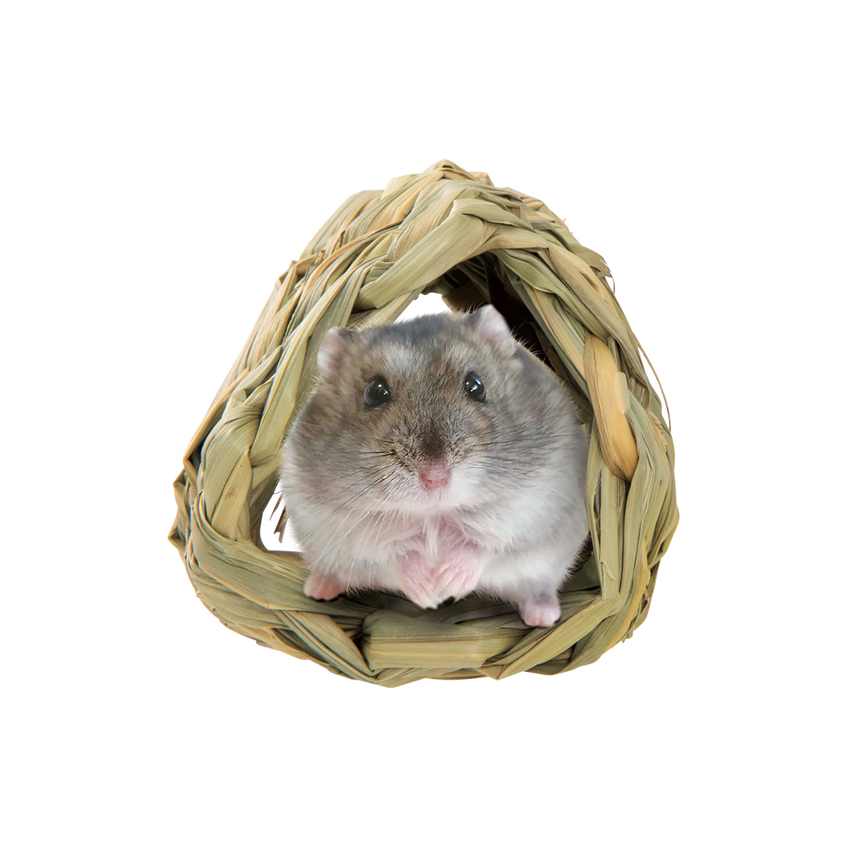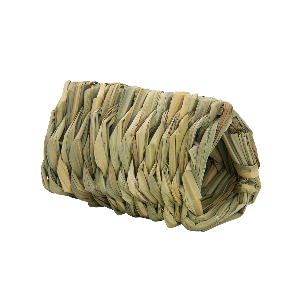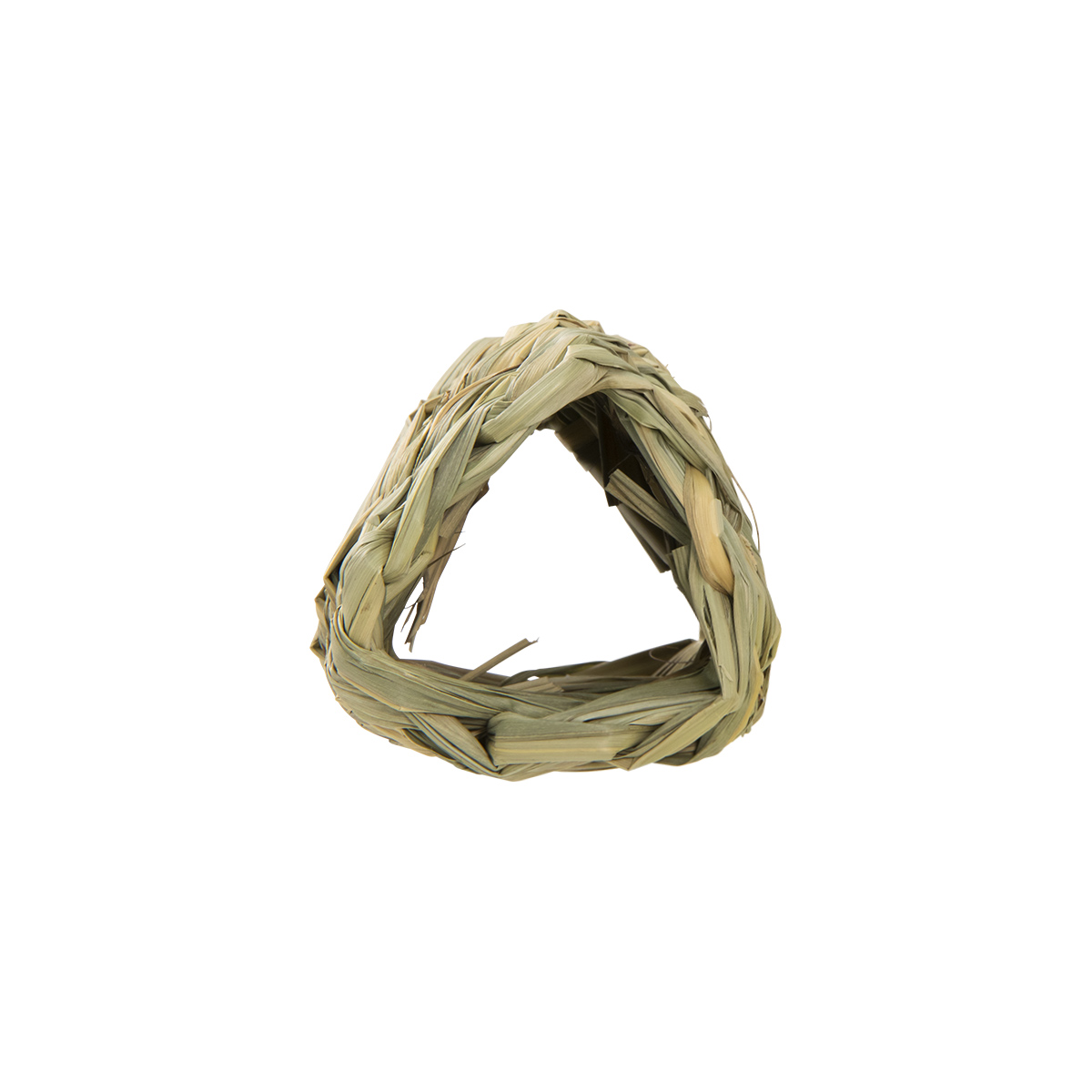 平らな床に置いても転がりすぎない小動物用のワラでできた、楽しく遊べる三角トンネル