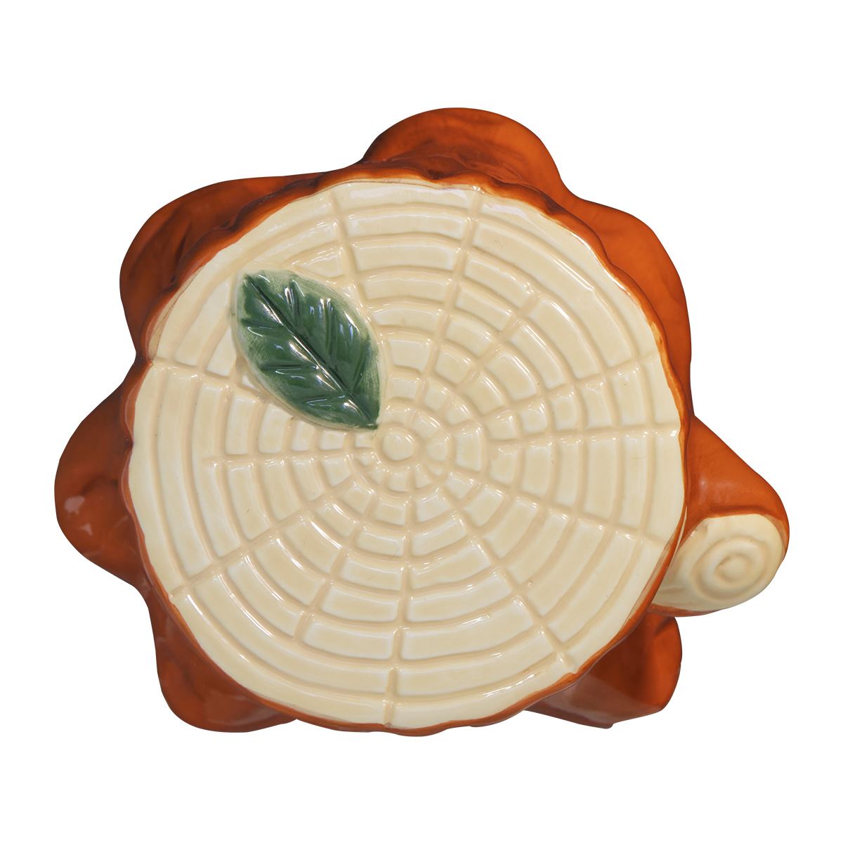 おそうじ簡単、陶磁器製!切株の洞からのぞく顔、かわいい寝顔も素敵です。